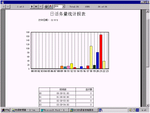 日話務(wù)量統(tǒng)計(jì)報(bào)表、線路話務(wù)量統(tǒng)計(jì)報(bào)表、操作類型分類統(tǒng)計(jì)報(bào)表、電腦話務(wù)分類統(tǒng)計(jì)報(bào)表。