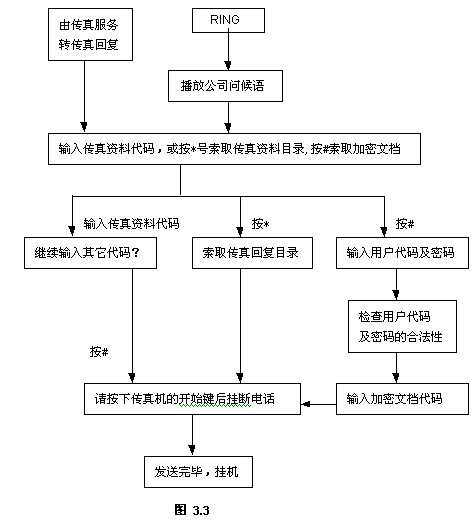 上例中按'4'進入傳真服務(wù),下面將詳細介紹傳真服務(wù)器各部分功能模塊: