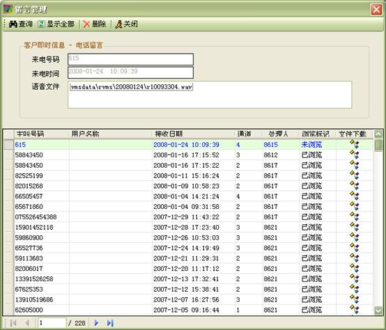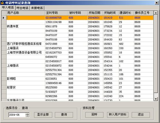 系統(tǒng)可記錄業(yè)務(wù)人員的每次通話,操作員可根據(jù)要求按用戶及工單查詢各種類型的呼叫記錄(呼入、呼出、呼入失。豢刹樵儫o人值班時用戶的留言,記錄每次與用戶通話的基本問題及解決方法;班長坐席可查詢工作人員的工作記錄