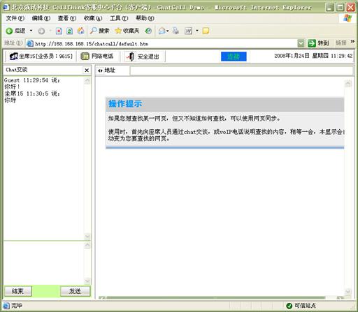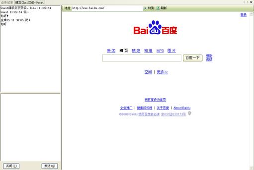 網(wǎng)頁同步:客戶在通過"客服代表回復(fù)"、"互聯(lián)網(wǎng)電話"、"文字交談"等方式與客服代表進行實時交流時,還可以通過網(wǎng)頁同步功能,與客戶代表的瀏覽器進行同步。這樣,客戶與客戶代表看到的是同一網(wǎng)頁,由客戶代表引導(dǎo)客戶對網(wǎng)頁進行瀏覽,找到所需要的信息。網(wǎng)頁同步功能適用于不同的實時交流方式,可以大大提高客戶服務(wù)的效率和質(zhì)量。如圖14、15所示: