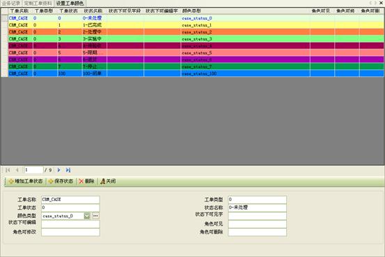 2)自定義工單:根據(jù)所定義的不同類型工單,用戶還可以靈活定制每種工單的具體內(nèi)容,并且還可以設(shè)置顯示的顏色,可以更明顯的區(qū)分不同狀態(tài)的工單、顯示顏色等。如圖6和7所示: