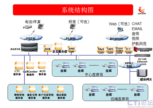 基于AVAYA S8720 交換機,部署PBX、CTI服務(wù)器、Hi-Link核心控制框架、CTI Server、IVR交互式語音應(yīng)答、TTS、智能傳真系統(tǒng)、座席錄音管理、報表統(tǒng)計分析、呼叫中心監(jiān)控管理、系統(tǒng)配置管理、業(yè)務(wù)軟件等。