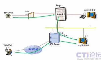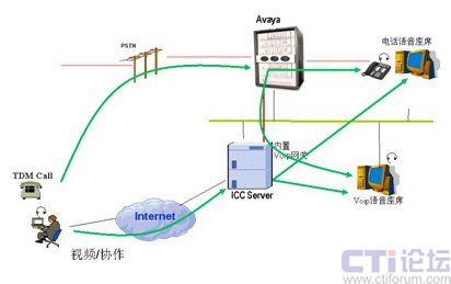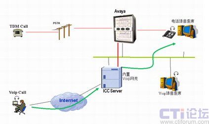 通過Internet來的Voip呼叫通過ICC服務(wù)器轉(zhuǎn)接到座席。