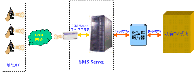 短信收發(fā)服務器是通過數據交換的方式與您的系統(tǒng)進行連接,目前支持數據庫的交換方式,可以通過Oralce、MS SQL SERVER 、MS ACCESS等關系型數據庫和現有系統(tǒng)進行數據交換。