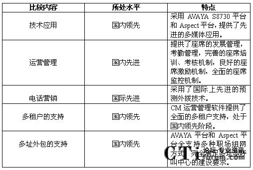 綜合比較,深圳電信商業(yè)呼叫中心的建設處于國內(nèi)領先階段,有些技術甚至處于國際先進的水平。比較如下: