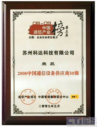 2009中國通信產(chǎn)業(yè)榜 科達入圍“2008中國通信設備供應商50強”