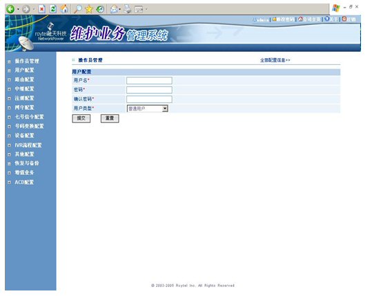 如果說節(jié)省了幾臺(tái)服務(wù)器和CTI中間軟件的開支對于用戶而言僅僅是一個(gè)直觀的體驗(yàn),那么RT-CCP1000的維護(hù)和管理將對用戶產(chǎn)生長久的影響,在維護(hù)和管理上仍然堅(jiān)持著一體化核心理念的RT-CCP1000平臺(tái),將用戶從多個(gè)廠家的設(shè)備互聯(lián)和維護(hù)中(程控交換機(jī)/CTI服務(wù)器/IVR服務(wù)器/錄音服務(wù)器)徹底的解放出來。RT-CCP1000基于WEB方式的全中文操作維護(hù)界面始終走在業(yè)界的最前沿。