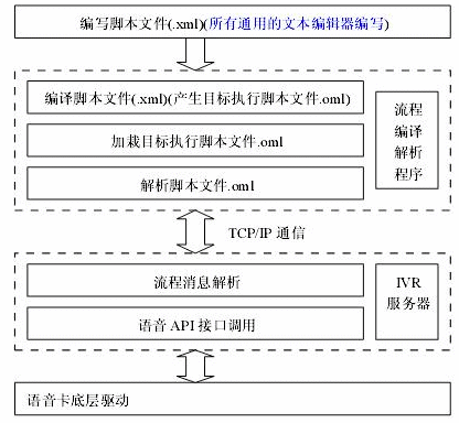 本系統(tǒng)平臺(tái)在設(shè)計(jì)時(shí),綜合考慮各種電話語(yǔ)音業(yè)務(wù)的應(yīng)用需要,參考VoiceXML的規(guī)范,利用流行的XML腳本語(yǔ)言格式,設(shè)計(jì)出一種方便、簡(jiǎn)單、使用的應(yīng)用平臺(tái),在該平臺(tái)上可以實(shí)現(xiàn)幾乎所有的電話語(yǔ)音應(yīng)用業(yè)務(wù),免去基礎(chǔ)語(yǔ)言編程的麻煩。只要熟悉本平臺(tái)的腳本語(yǔ)言格式,通過(guò)本平臺(tái)提供的各種應(yīng)用實(shí)例腳本,就能快速生成自己需要的業(yè)務(wù)流程,具體腳本語(yǔ)言格式請(qǐng)參考《MyVXML電話流程腳本編程指南》。