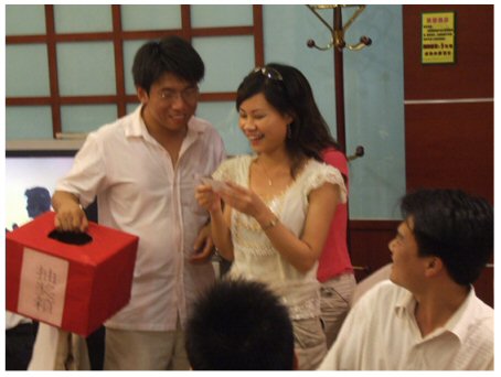 在聚餐接近尾聲的時(shí)候開始了激動人心的抽獎活動,本次共產(chǎn)生8個大獎。每個中獎同仁都獻(xiàn)歌一曲,從而使活動的氣氛達(dá)到了高潮。