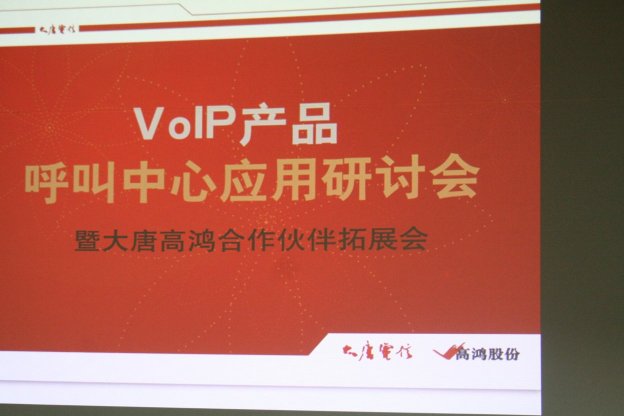 2006年9月8日,由中國VoIP業(yè)界的引領(lǐng)者大唐高鴻數(shù)據(jù)網(wǎng)絡(luò)技術(shù)股份有限公司(股票簡稱:高鴻股份;股票代碼:000851)主辦的大唐高鴻VoIP產(chǎn)品呼叫中心應(yīng)用研討會在北京大唐電信集團(tuán)主樓隆重舉行,此次會議由CTI論壇協(xié)辦。這是會議是大唐高鴻攜其VoIP產(chǎn)品進(jìn)軍呼叫中心領(lǐng)域的里程碑。參加會議的代表來自虛擬運(yùn)營商、VoIP公司、呼叫中心公司,企業(yè)行業(yè)客戶以及知名媒體共120余人,大唐高鴻還向會議代表介紹了其VoIP產(chǎn)品與呼叫中心廠商的合作計(jì)劃,預(yù)示著大唐高鴻正式向全國展開VoIP產(chǎn)品在呼叫中心行業(yè)中的應(yīng)用的市場攻勢。