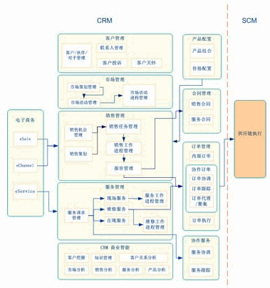 實現(xiàn)動態(tài)價值鏈環(huán)境下的CRM,支持電子商務(wù)、協(xié)作商務(wù),并與SCM集成。