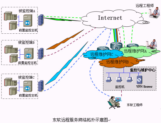 以東軟IT HELPDESK作為接入平臺,結(jié)合基于VPN的遠程監(jiān)控、遠程維護技術(shù),遵照ITIL流程,為客戶提供及時、優(yōu)質(zhì)的服務(wù),達到降低服務(wù)成本、提高服務(wù)效率、改善客戶滿意度的目的。