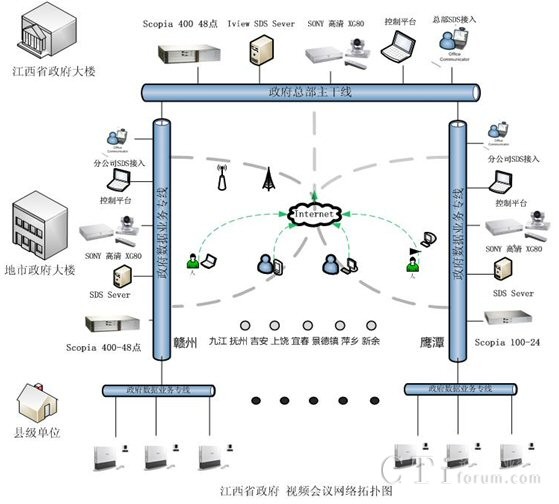 G50等相關設備。本套會議電視系統(tǒng)成功地實現(xiàn)了省、設區(qū)市、縣(區(qū))三級聯(lián)網(wǎng),此項目的部署,同時得到了RADVISION合作伙伴江西省電信公司的大力支持與協(xié)調(diào)。在項目簽約后3個月內(nèi)就完成了貨物調(diào)備、安裝、調(diào)試及測試、培訓等一系列相關工作,受到了江西省政務信息網(wǎng)領導們的一致好評。