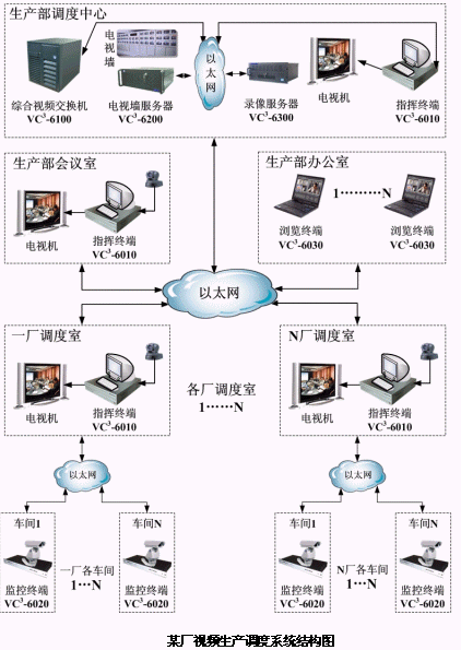 針對以上情況,北京華緯訊電信技術有限公司基于最新推出的VC3-6000視頻指揮調度系統(tǒng)提出了針對性的"視頻生產調度系統(tǒng)"解決方案。該系統(tǒng)是基于SIP架構的軟交換綜合視頻通信系統(tǒng),系統(tǒng)整合多種資源,實現(xiàn)了視頻指揮調度、遠程視頻監(jiān)控、視頻會議、無線移動視頻接入、環(huán)境監(jiān)測及報警聯(lián)動等功能。該系統(tǒng)可被運用于軍事指揮、應急通信、鐵路調度、行政會議、遠程教學、遠程醫(yī)療以及港口和機場監(jiān)控等領域。目前該系統(tǒng)已被成功用于"總裝遠程可視技術支援系統(tǒng)"、空軍某部戰(zhàn)區(qū)級"VC3可視指揮控制系統(tǒng)"等系統(tǒng)的建設。