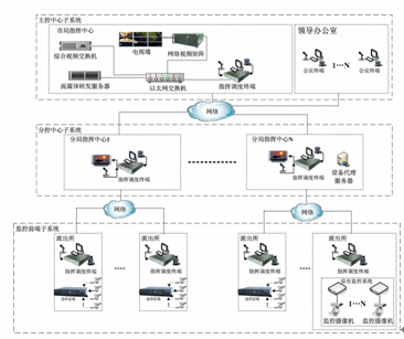 由綜合視頻交換機、視頻錄像服務器、網(wǎng)絡視頻矩陣、流媒體轉發(fā)服務器、指揮調度終端、音視頻切換矩陣和音視頻輸入輸出設備等組成,部署在市局指揮中心。主要作用是:完成信令和控制信息交換、調度以及系統(tǒng)管理;實現(xiàn)視頻指揮調度、遠程視頻瀏覽、視頻錄像和電視墻顯示等功能。