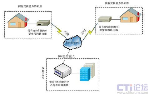 4S店通過ADSL加VPN的方式接入網絡。這種方式不僅接入方便、成本低、而且VPN有效的防止了網絡黑客的攻擊以及非法用戶的盜用,最大程度上保證了網絡的安全。