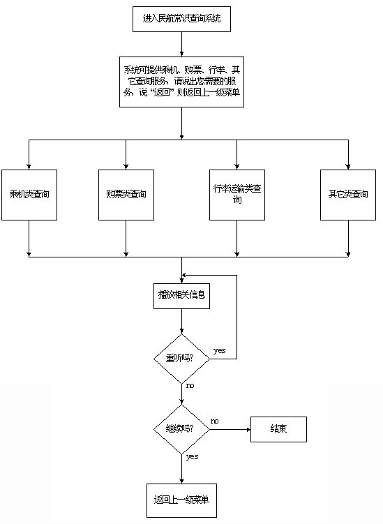 該系統(tǒng)主要采用語音技術實現(xiàn)航班信息查詢,系統(tǒng)的主業(yè)務流程如圖一至五示。