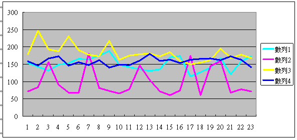 這里的四條線(xiàn),分別代表了一個(gè)座席員的情況,黃色這條線(xiàn)代表的座席員在1號(hào)的時(shí)候,平均通話(huà)時(shí)長(zhǎng)差不多是180秒,二號(hào)增加到250秒,之后慢慢減少到17號(hào)的150秒,以及23號(hào)的170秒。