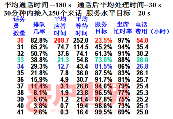服務水平=SL(座席數(shù),服務目標基準時長,通話量,服務時長)