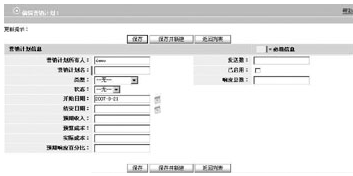 營銷計劃管理功能可以讓用戶跟蹤每個營銷計劃已生成的業(yè)務(wù)機會量。當(dāng)創(chuàng)建業(yè)務(wù)機會時,用戶可以在營銷計劃來源字段中填入相關(guān)信息,以表明該業(yè)務(wù)機會是由營銷計劃生成的,從而檢驗、評定每個營銷計劃的執(zhí)行效率。