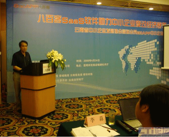 CTI論壇(ctiforum)05月07日消息: 4月24日下午,由云南省中小企業(yè)發(fā)展協(xié)會(huì)主辦、八百客(北京)軟件有限公司協(xié)辦的“八百客SaaS軟件助力中小企業(yè)度過經(jīng)濟(jì)寒冬——云南省中小企業(yè)發(fā)展協(xié)會(huì)贈(zèng)送會(huì)員800APP中小企業(yè)版活動(dòng)”在昆明邦克飯店隆重舉行。云南省中小企業(yè)發(fā)展協(xié)會(huì)秘書長(zhǎng)華松、八百客首席應(yīng)用專家高少義與來自云南省近100家的中小企業(yè)代表,共同探討了如何通過信息化建設(shè)方式來幫助中小企業(yè)獲得商業(yè)機(jī)會(huì),把握商機(jī),提高企業(yè)經(jīng)營(yíng)業(yè)績(jī)。