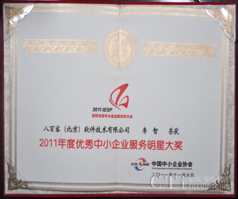 作為國(guó)內(nèi)首家SaaS廠商,八百客積極推動(dòng)云計(jì)算在中小企業(yè)中的宣傳與運(yùn)用。2006年,八百客在國(guó)內(nèi)率先推出管理自動(dòng)化開發(fā)平臺(tái)800APP, 它擴(kuò)展了按需服務(wù),并實(shí)現(xiàn)了客戶可根據(jù)需要自定制應(yīng)用程序,成為了改變應(yīng)用程序開發(fā)的一個(gè)新途徑。為表彰八百客在中小企業(yè)信息化中做出的杰出貢獻(xiàn),本次大會(huì)特別為八百客頒發(fā)了“2011年度優(yōu)秀中小企業(yè)服務(wù)產(chǎn)品大獎(jiǎng)”,此外還授予八百客總經(jīng)理李智 “2011年度優(yōu)秀中小企業(yè)服務(wù)明星大獎(jiǎng)”。