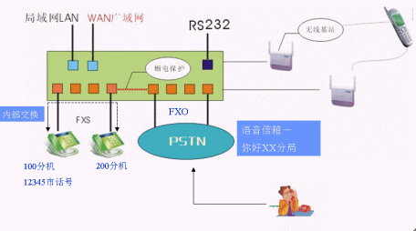語音端口可設(shè)置分機(jī)號(hào)碼,內(nèi)部通信為PCM方式 |