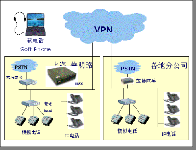 虛擬辦事處/分公司: 企業(yè)沒有常駐辦公機構(gòu)的地區(qū),可以通過 IPX 系統(tǒng)將用戶的電話咨詢通過 INTERNET 傳輸?shù)娇偛刻幚。當(shù)卦O(shè)置一套網(wǎng)絡(luò)電話終端