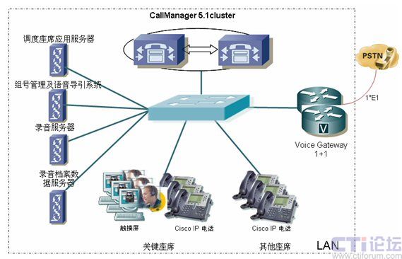 正音科技電話控制調(diào)度系統(tǒng)充分利用現(xiàn)有首都機場的IP網(wǎng)絡(luò)及通信資源,以IP電話系統(tǒng)為基礎(chǔ),構(gòu)建電話調(diào)度系統(tǒng)基礎(chǔ)網(wǎng)絡(luò)。電話控制系統(tǒng)主要由兩部分組成,其中包括由CallManager、語音網(wǎng)關(guān)、IP電話構(gòu)成的底層IP通信系統(tǒng);在此基礎(chǔ)上,還有正音科技為首都國際機場開發(fā)的電話調(diào)度控制應(yīng)用軟件系統(tǒng)以及與應(yīng)急救援警示系統(tǒng)等集成的接口。