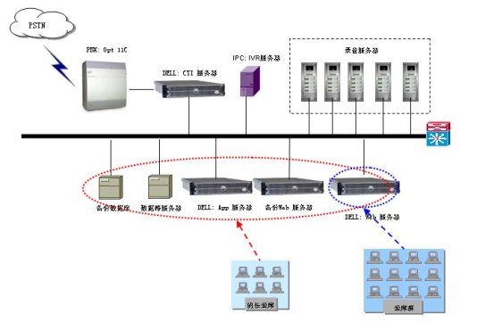 PBX、PowerCALL中間件、PowerVOICE、CRM系統(tǒng)、Web網(wǎng)站、人工座席、報表、錄音、監(jiān)控等。