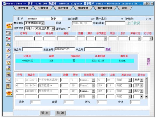 客戶根據(jù)麥考林提供的產(chǎn)品目錄告訴座席代表所需的產(chǎn)品和數(shù)量,并說明送貨方式、付款方式等信息,CRM軟件會自動計算客戶的消費金額,如果是老客戶或增在進(jìn)行促銷活動,軟件會自動計算相應(yīng)的折扣。如果某種產(chǎn)品缺貨,系統(tǒng)將告訴座席代表,并提供最近到貨日期供客戶參考。購買麥考林的許多商品,會有一些小禮品贈送,CRM軟件會根據(jù)客戶訂單列出客戶可以選擇的小禮品供客戶選擇。訂單輸入完成后進(jìn)行訂單入庫操作,并根據(jù)訂單的屬性自動生成相關(guān)工單派發(fā)有關(guān)部門。