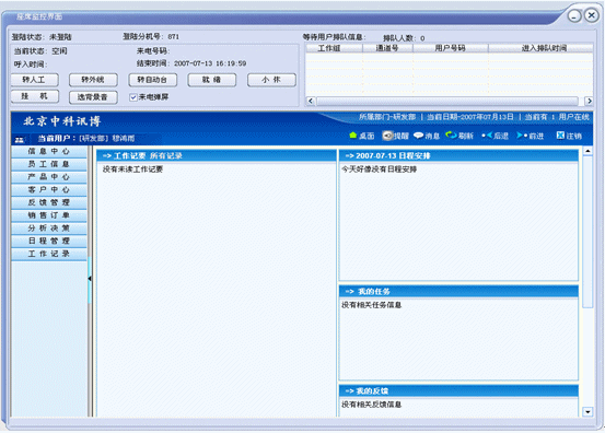 根據(jù)來電彈出屏幕,可以跟CRM系統(tǒng)結(jié)合起來,為客戶施行VIP服務,投訴處理功能,業(yè)務咨詢功能,業(yè)務受理功能,業(yè)務取消功能,業(yè)務咨詢功能等等的錄入都可以通過來電屏幕進行,通過在客戶信息表中進行信息查詢功能。