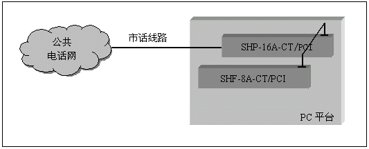 通道數(shù)較多的大中型應用系統(tǒng),一般采用數(shù)字中繼線(E1)接入公共電話網(wǎng),三匯公司的SHD系列數(shù)字中繼卡可以提供相應的解決方案。SHD系列數(shù)字中繼在一塊卡上集成了E1線接口,語音資源,信令處理等所必須的全部功能,其接入信令處理模塊可處理中國1號信令(SS1),7號信令(SS7),ISDN PRI協(xié)議(DSS1),單塊卡最多可支持4個E1接入。通過CT-BUS(或ST-BUS)總線,還可以在數(shù)字中繼線上實現(xiàn)傳真功能。典型應用結構如下圖: