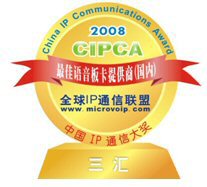 9月19日,在上海盛大舉行的CIPCC中國IP通信大會(huì)上,杭州三匯摘取了CIPCA 2008年國內(nèi)最佳語音板卡提供商大獎(jiǎng),體現(xiàn)了杭州三匯在國內(nèi)語音卡領(lǐng)域的絕對領(lǐng)導(dǎo)和優(yōu)勢地位。