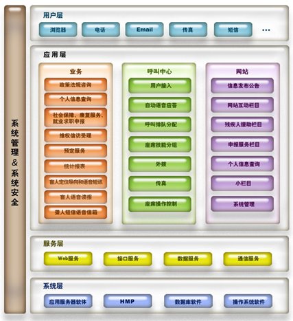 用戶層是呼叫系統(tǒng)與系統(tǒng)使用者之間的聯(lián)系層。工作人員可以通過瀏覽器進(jìn)入系統(tǒng)的業(yè)務(wù)部分進(jìn)行工作,處理相應(yīng)事務(wù);用戶可以通過電話打入系統(tǒng)的呼叫中心部分,獲得自動(dòng)或人工服務(wù),也可以通過Email、短信、傳真等方式與系統(tǒng)聯(lián)系;同時(shí),系統(tǒng)可以進(jìn)行電話外撥,聯(lián)系相關(guān)部門或進(jìn)行主動(dòng)服務(wù)。