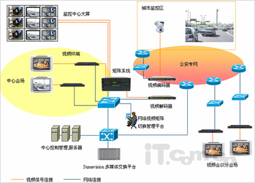 - 信息采集:主要依靠視頻監(jiān)控系統(tǒng)從應急事件現(xiàn)場采集到現(xiàn)場視頻信息及各種數(shù)據(jù)信息,將被傳輸?shù)街笓]中心,必要情況下通過視頻會議系統(tǒng)與各部門領(lǐng)導對事件處理進行協(xié)商。