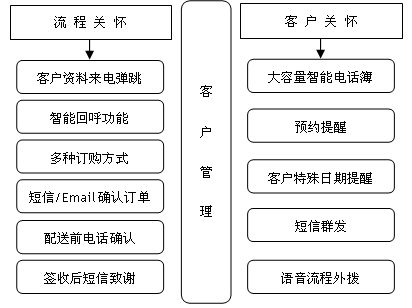 可與企業(yè)既有的800或400電話相結合,包含1至16個客服人員坐席設置,主要處理實時的產(chǎn)品售前售后咨詢、電話訂單受理等呼入類業(yè)務,也能滿足以外撥為主的客戶關懷需求;同時,客服人員能夠通過系統(tǒng)隨時了解各種商品庫存情況,以便對網(wǎng)上交易提供及時有效的服務。來電彈跳客戶資料中必須顯示出客戶的歷史消費詳細信息,以及正在進行中的交易詳情。