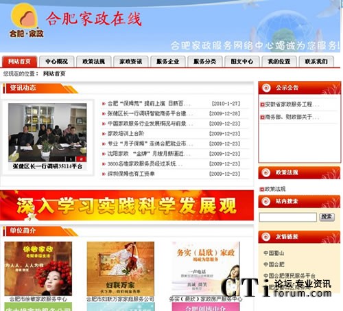CTI論壇(ctiforum)3月5日消息(記者 楊毅):2009年末,由深圳市深海捷科技有限公司(簡稱“深海捷”)提供技術(shù)支持的合肥家政服務網(wǎng)絡中心正式上線。合肥家政網(wǎng)絡中心是安徽省商務部第一批批準建立的家政服務網(wǎng)絡中心,合肥家政網(wǎng)絡中心的建立為安徽全省的家政服務建設提供了極大地參考標準。市民足不出戶,通過登錄合肥家政服務網(wǎng)絡中心官方網(wǎng)站:http://web1.35114.cc/WebSite/51628/index.shtm即可找到滿意的家政服務。