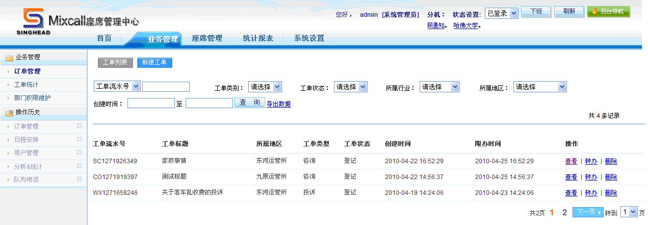 通過(guò)工單統(tǒng)計(jì)功能,座席人員可以看到所屬權(quán)限的所有工單和狀態(tài)。