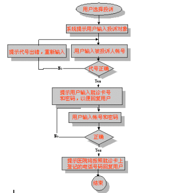 在處理用戶投訴時,要求對醫(yī)院所有服務人員分配代碼。用戶投訴時按照服務代碼進行投訴。同時,醫(yī)院將對所有投訴用戶進行回復。如通告處理結(jié)果,向用戶道歉等。對用戶回復時,將按照用戶在申請就診卡時留下的電話號碼進行回復。這種也可以促使用戶留下真實的電話號碼。用戶可以到醫(yī)院電話號碼。