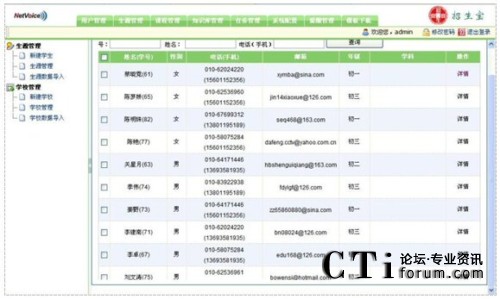 招生寶是建立在網(wǎng)音IPS一對(duì)多呼叫中心平臺(tái)上的集成電話、短信、郵件等功能一體的輔助招生系統(tǒng),實(shí)現(xiàn)招生咨詢、信息發(fā)布、生源跟蹤、課程定義、教師管理、即時(shí)提示、統(tǒng)計(jì)分析等招生實(shí)用功能。實(shí)現(xiàn)招生過(guò)程的信息化、高效化、精細(xì)化和人性化管理的高效招生平臺(tái),也是教育培訓(xùn)機(jī)構(gòu)必不可少的招生信息平臺(tái)。