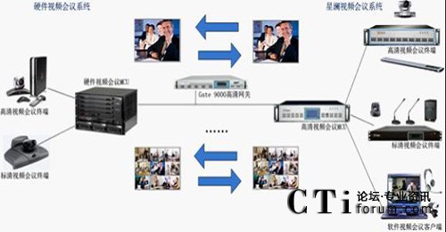 通過H.323會(huì)議網(wǎng)關(guān),把polycom終端信號(hào)接到新視頻會(huì)議系統(tǒng)中,保護(hù)原有投資,建立大規(guī)模一體化視頻會(huì)議的應(yīng)用。