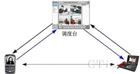 當(dāng)指揮人員需要讓兩個(gè)視頻設(shè)備實(shí)現(xiàn)點(diǎn)對(duì)點(diǎn)視頻通信時(shí),如兩個(gè)終端是同一型號(hào)設(shè)備,可直接進(jìn)行視頻通信,如兩個(gè)不同型號(hào)的視頻設(shè)備需要進(jìn)行視頻通信,可由調(diào)度臺(tái)調(diào)度兩個(gè)視頻設(shè)備,然后通過(guò)視頻轉(zhuǎn)發(fā)功能實(shí)現(xiàn)兩個(gè)不同視頻設(shè)備的視頻通信。