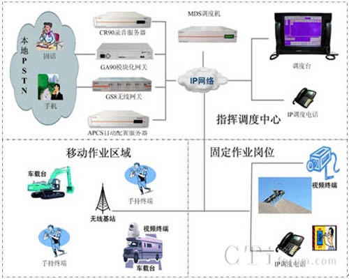 MDS系統(tǒng)可以應(yīng)用于各種作業(yè)現(xiàn)場的指揮調(diào)度, MDS系統(tǒng)不但支持系統(tǒng)基本的語音通信,調(diào)度中心可以通過視頻、數(shù)據(jù)、文本消息等綜合的多媒體方式與作業(yè)人員進行通信交互,滿足各種復(fù)雜環(huán)境下的指揮調(diào)度需求。系統(tǒng)可以通過GS8無線網(wǎng)關(guān)、GA90