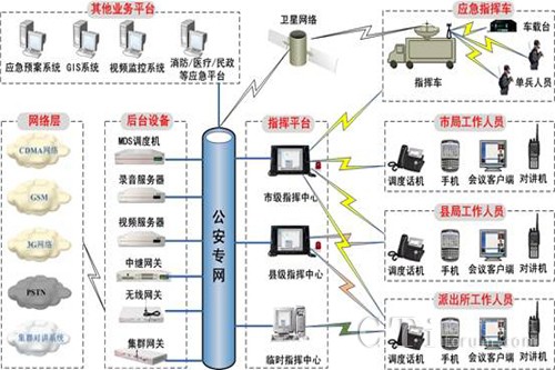一方面,由于公安系統(tǒng)承擔(dān)著打擊違法分子、維護(hù)社會穩(wěn)定的責(zé)任。因此就要求公安指揮人員能夠在出現(xiàn)緊急狀況時,能夠在第一時間安排公安人員前往處理,并且能夠在處理的過程中實時的指揮中心進(jìn)行溝通,同時為了保證公安系統(tǒng)工作的高效性,要求能夠?qū)崿F(xiàn)市指揮中心直接和分布在全市、縣區(qū)分局、派出所、巡邏人員進(jìn)行直接的通信,由指揮中心根據(jù)事態(tài)的發(fā)展,統(tǒng)一調(diào)度各方面的資源來配合處理,爭取在最短的時間解決突發(fā)事件,防止事態(tài)的發(fā)展。