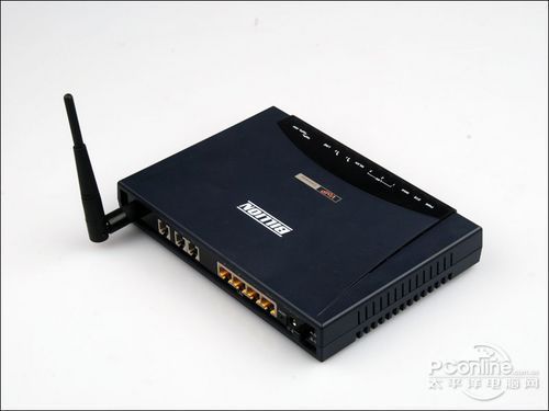 BiPAC 6404VGP外觀看上去與一臺普通的無線路由器沒多大區(qū)別,由于是面向企業(yè)級用戶,所以外型設(shè)計比較沉穩(wěn)。整機深藍色,在無線路由器的正上方鮮明的標注出它同時還是一臺VoIP語音網(wǎng)關(guān)。