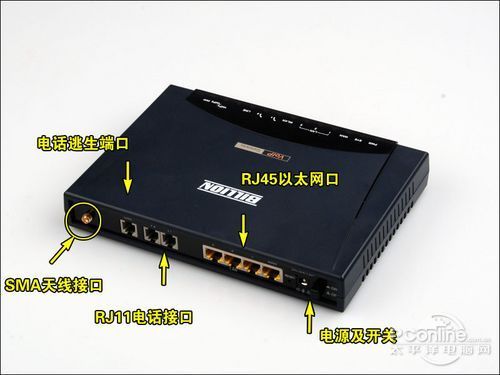 BiPAC 6404VGP后面接口板除了和普通無線路由器一樣有1個WAN接口,4個LAN接口外,還多出了三個RJ11的電話接口,這個就是用來連接傳真機或電話機的。此外,考慮到BiPAC 6404VGP的無線功能在企業(yè)中應(yīng)用需要有較大的信號覆蓋范圍,所以它還提供了一個SMA天線接口可用來連接高增益天線。