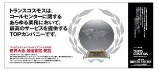 引進(jìn)國(guó)際領(lǐng)先的MO3(獲得2006 “Contact Center World Award” 最優(yōu)秀獎(jiǎng))呼出技術(shù):MO3是母公司transcosmos獨(dú)力研發(fā)的呼出服務(wù)體系。通過對(duì)數(shù)據(jù)的充分分析和挖掘,以“顧客行動(dòng)模式”為基礎(chǔ),預(yù)測(cè)“哪個(gè)顧客、哪個(gè)坐席、在哪個(gè)時(shí)間點(diǎn)、提供什么樣的服務(wù)、進(jìn)行怎樣的進(jìn)一步接觸”,以及精確計(jì)算是否收到最大投資和成效比(ROI),實(shí)行最有效的和顧客接觸的運(yùn)營(yíng)。