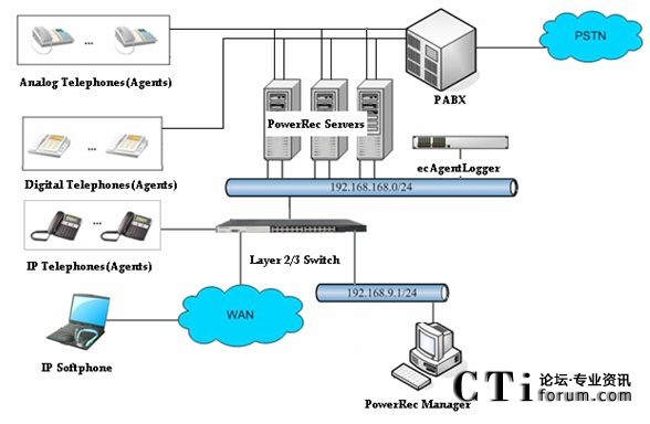 該系統(tǒng)采用三匯軟件VOIP錄音解決方案,交換機(jī)采用AVAYA S8730交換機(jī),9620、9630IP話機(jī)。