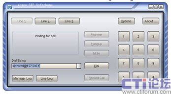 最后,交卷的時(shí)刻到了,我們的應(yīng)用到底能不能用呢?讓我們來測(cè)試一下。打開Prophecy自帶的SIP Phone,如圖4所示,給sip:vxml@127.0.0.1撥號(hào)。當(dāng)我們聽到揚(yáng)聲器傳來“Welcome